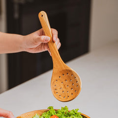 Note: Each utensil may vary slightly in size, tone, and grain due to the natural character of teak wood.