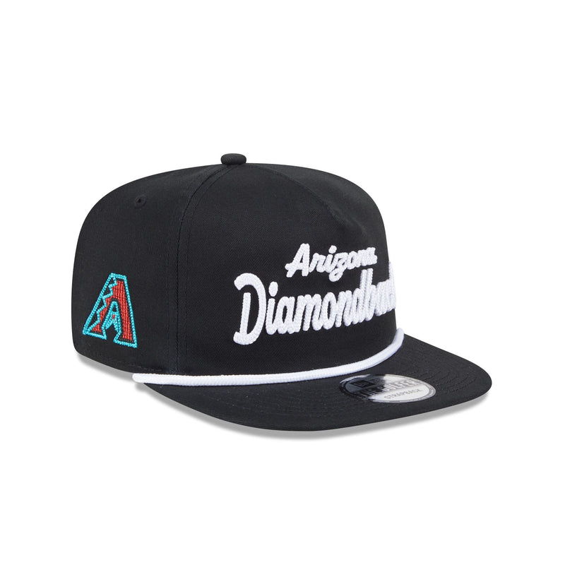The Arizona Diamondbacks Team Text Golfer features an embroidered Diamondbacks script at the front panels with a team logo at the right-wear side and a snapback closure at the rear.