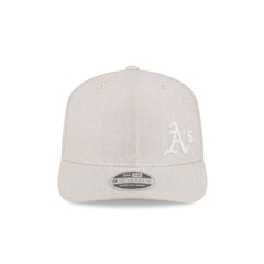 The Athletics Flawless 9SEVENTY Trucker Hat features a hemp fabrication with an embroidered Athletics logo at the front panels with an adjustable snapback closure at a mesh rear.