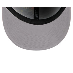 The Atlanta Braves Diamond Hero Edition 59FIFTY Fitted Cap features an embroidered Braves onomatopoeia pop logo at the front panels with baseball comic book prints at the front and back panel. Additional details include the MLB Batterman logo at the rear and a gray undervisor.