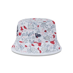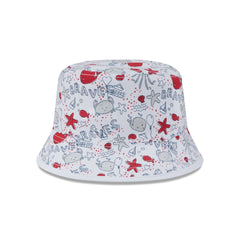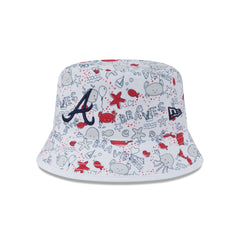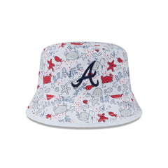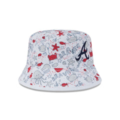 The Atlanta Braves Kids Ocean Bucket Hat features an embroidered Braves logo at the front with a nautical design throughout the hat.
