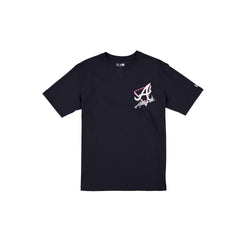 The Atlanta Braves Trend Glow Logo T-Shirt features a screen-printed puff paint Braves glow-in-the-dark logo at the left chest and graphic at the rear.