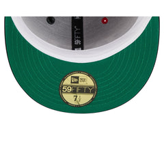 The Atlanta Falcons Spring Satin 59FIFTY Fitted Cap features an embroidered Falcons wordmark at the front panels with a New Era pin at the top left panel and an NFL Shield logo at the rear. Additional details include a satin fabrication throughout, a logo at the right-wear side, and a green undervisor.