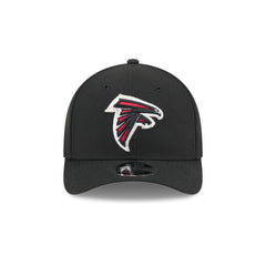 The Atlanta Falcons Team 9FORTY M-Crown Snapback features an embroidered Falcons logo at the front panels with a matching NFL Shield logo above an adjustable snapback closure at the rear and a gray undervisor.