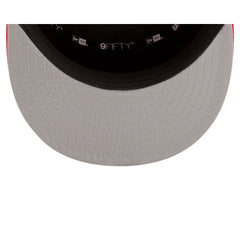 The Atlanta Hawks 2025 Tip-Off Split Panel 9FIFTY Snapback features an embroidered Hawks logo at the front panels against a pinstripe jersey fabrication with the NBA Logoman at the right-wear side. Additional details include an adjustable snapback closure at the rear and a gray undervisor.