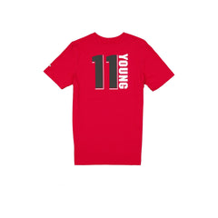 The Atlanta Hawks Name & Number Trae Young T-Shirt features a screen-printed Hawks graphic at the front with the player's name and number at the rear.