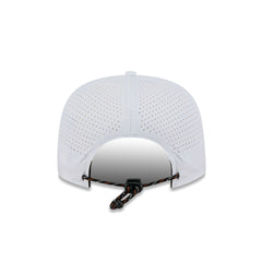 The Baltimore Orioles Optic White Performance Rope Golfer features an embroidered Orioles logo at the front panels with breathable performance fabric throughout the cap. Additional details include a city patch at the right-wear side, an adjustable drawstring closure at the rear, and a black undervisor.