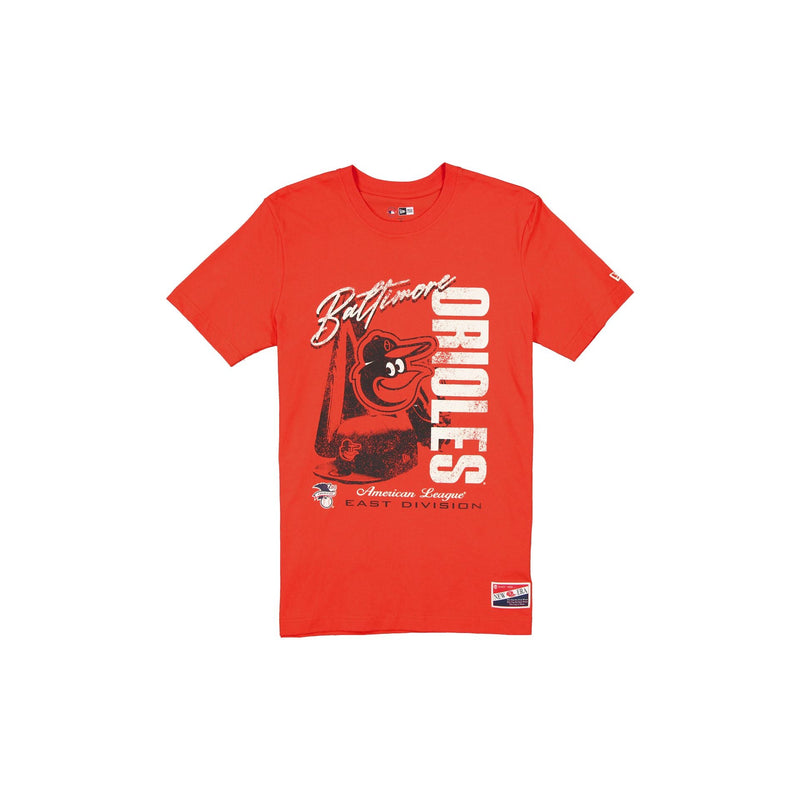 The Baltimore Orioles Throwback T-Shirt features a screen-printed Orioles graphic at the front and a New Era jock tag at the left hip.