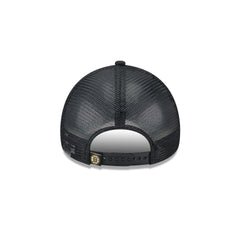 The Boston Bruins Distressed 9FORTY A-Frame Trucker features a distressed screen-printed Bruins wordmark and logo at the front panels with a team tag at a snapback closure at the rear and a green undervisor.