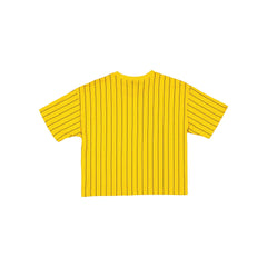 The Boston Bruins Throwback Women's Pinstripe T-Shirt features a screen-printed Bruins wordmark and logo at the front with a New Era jock tag at the left hip.