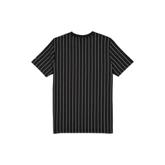 The Boston Bruins Throwback Pinstripe Wordmark T-Shirt features a twill applique Bruins wordmark and logo at the front with a New Era jock tag at the left hip.