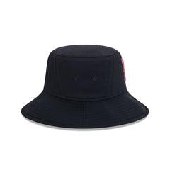 The Boston Red Sox 2025 Spring Training Stretch Bucket Hat features an embroidered Red Sox logo at the front panels with a matching MLB Batterman at the rear.