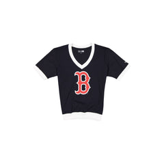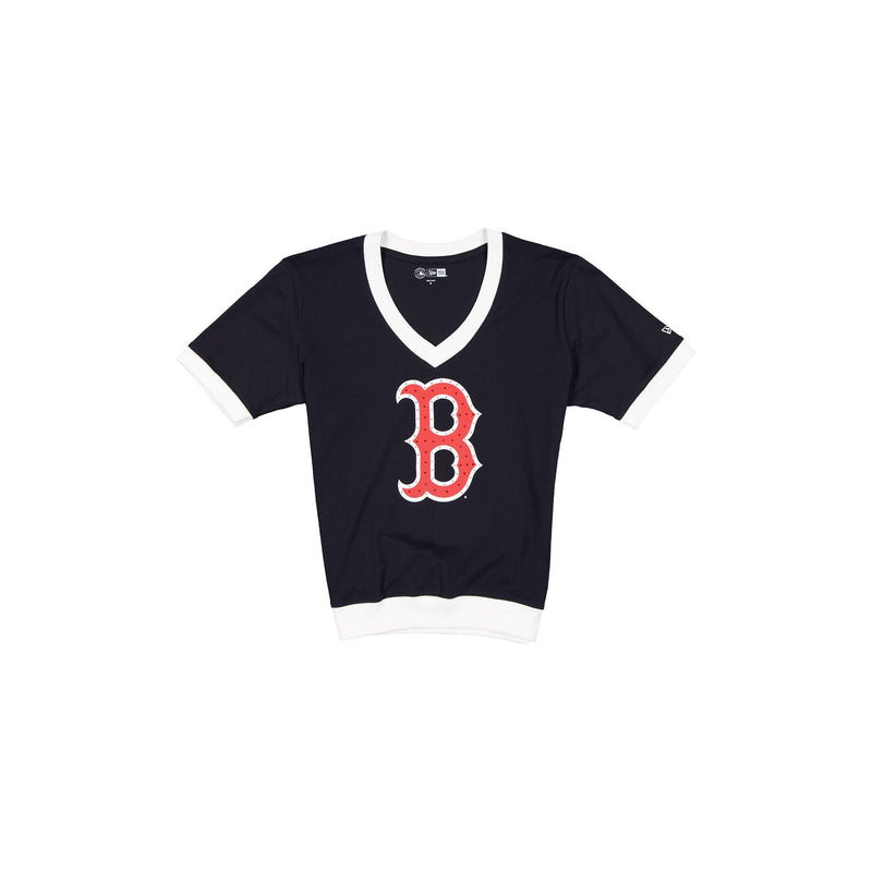 The Boston Red Sox Game Day Women's T-Shirt features a screen-printed Red Sox jeweled logo at the front with a v-neckline.