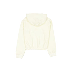 The Boston Red Sox Glam Game Women's Hoodie features a screen-printed Red Sox logo at the left chest with matching embroidered flowers. Additional details include a zipper closure and a floral lining.