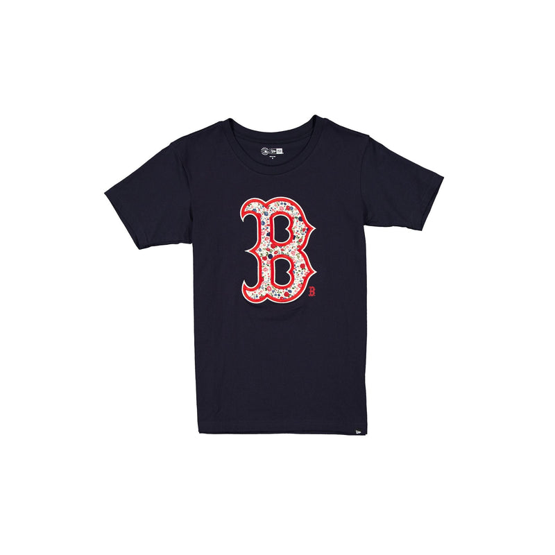 The Boston Red Sox Glam Game Women's T-Shirt features a floral jersey applique Red Sox logo at the front.