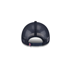 The Boston Red Sox Kids Chalk 9FORTY A-Frame Trucker features a puff screen-printed Red Sox wordmark and logo at the front panels with a team tag on a snapback closure at a mesh rear.