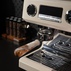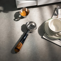 This bottomless espresso portafilter allows you to observe espresso extraction directly, helping you fine-tune grind size and tamping technique for balanced results. The handle is made from walnut wood and food-grade resin, combining durability, comfort, and modern aesthetics. With precision laser-drilled filtration and a 304 stainless steel body, it ensures smooth, consistent extraction across compatible espresso machines.