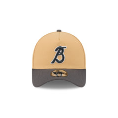 The Bravos de León Bronze 9FORTY A-Frame Snapback features an embroidered Bravos logo at the front with a snapback closure at the rear and a gray undervisor.