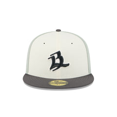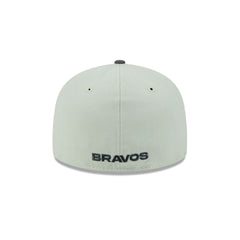 The Bravos de León Mint 59FIFTY Fitted Cap features an embroidered Bravos logo at the front panels with a matching team wordmark at the rear and a gray undervisor.