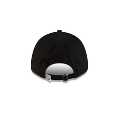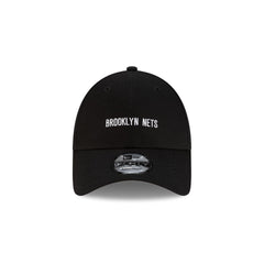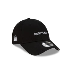The Brooklyn Nets China Games Black 9FORTY Adjustable Cap features an embroidered Nets wordmark at the front panels with a graphic at the right-wear side. Additional details include an adjustable D-Ring closure at the rear and a patterned undervisor.