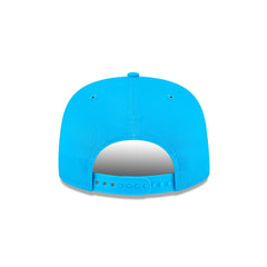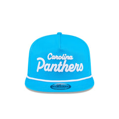 The Carolina Panthers Team Text Golfer features an embroidered Panthers script at the front panels with a team logo at the right-wear side and a snapback closure at the rear.