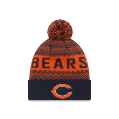 The Chicago Bears Wintry Kids Pom Knit features an embroidered Bears logo at the front with a team wordmark around the crown and a one-time removable pom.