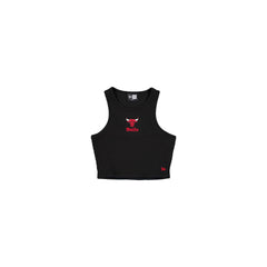 The Chicago Bulls Leisure Cropped Women's Tank Top features a screen-printed Bulls logo and wordmark at the front. The tank top is cropped.
