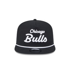 The Chicago Bulls Team Text Golfer features an embroidered Bulls script at the front panels with a team logo at the right-wear side and a snapback closure at the rear.