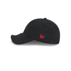 The Chicago Bulls Women's Script 9TWENTY Adjustable Cap features an embroidered Bulls script at the front panels with a team tag on an adjustable D-Ring closure at the rear.