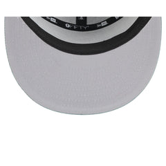 The Chicago Cubs Denim 9FIFTY Split Panel Trucker Hat features an embroidered Cubs logo at the front panels with an adjustable snapback closure at a mesh rear.