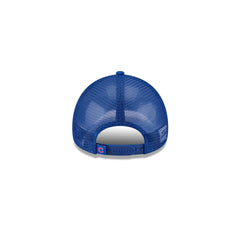 The Chicago Cubs Kids Chalk 9FORTY A-Frame Trucker features a puff screen-printed Cubs wordmark and logo at the front panels with a team tag on a snapback closure at a mesh rear.
