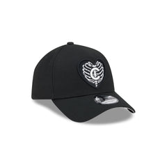 The Chicago Cubs Skeletal Heart 9FORTY A-Frame Snapback features a glow-in-the-dark embroidered Cubs heart patch at the front with a snapback closure at the rear and a gray undervisor.