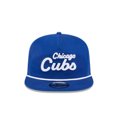 The Chicago Cubs Team Text Golfer features an embroidered Cubs script at the front panels with a team logo at the right-wear side and a snapback closure at the rear.