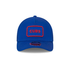 The Chicago Cubs Tonal Patch 9FORTY M-Crown A-Frame Trucker features an embroidered Cubs wordmark patch at the front panels with a team tag on a snapback closure at a mesh rear.