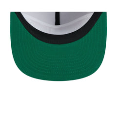 The Chicago Cubs Vintage Gray Golfer features an embroidered 'PROPERTY OF' Cubs wordmark at the front panels with a team logo at the right-wear side and a rope at the visor. Additional details include a snapback closure at the rear and a green undervisor.