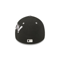 The Chicago White Sox Diamond Hero Edition 39THIRTY Stretch Fit features an embroidered White Sox onomatopoeia pop wordmark at the front panels with a ZOOM! wordmark at the left-wear side. Additional details include the MLB Batterman logo at the rear and a baseball comic undervisor.