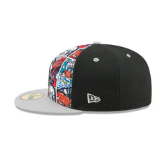 The Chicago White Sox Diamond Hero Edition 59FIFTY Fitted Cap features an embroidered White Sox onomatopoeia pop logo at the front panels with baseball comic book prints at the front and back panel. Additional details include the MLB Batterman logo at the rear and a gray undervisor.