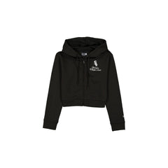 The Chicago White Sox Game Day Cropped Women's Zipper Hoodie features an embroidered White Sox logo and script wordmark at the left chest. Additional details include a zipper closure, pockets, and adjustable drawstrings at the hood.