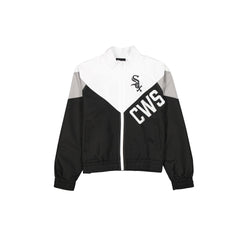 The Chicago White Sox Leisure Women's Windbreaker features a screen-printed White Sox logo at the left chest and wordmark on the collar at the rear. Additional details include a zipper closure and pockets.