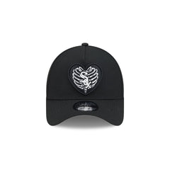 The Chicago White Sox Skeletal Heart 9FORTY A-Frame Snapback features a glow-in-the-dark embroidered White Sox heart patch at the front with a snapback closure at the rear and a gray undervisor.