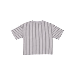 The Chicago White Sox Throwback Women's Pinstripe T-Shirt features a screen-printed White Sox wordmark and logo at the front with a New Era jock tag at the left hip.