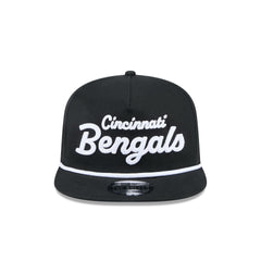 The Cincinnati Bengals Team Text Golfer features an embroidered Bengals script at the front panels with a team logo at the right-wear side and a snapback closure at the rear.