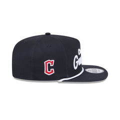 The Cleveland Guardians Team Text Golfer features an embroidered Guardians script at the front panels with a team logo at the right-wear side and a snapback closure at the rear.