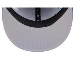 The Club León Indigo 59FIFTY Fitted Cap features the León primary logo embroidered at the front panels with alternate team logos throughout the crown, a team wordmark at the rear, and a gray undervisor.