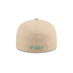 The Club Tigres UANL Ivory 59FIFTY Fitted Cap features an embroidered Tigres logo at the front panels with a matching team wordmark at the rear, a pastel green visor, and a gray undervisor.