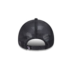 The Colorado Rockies Distressed 9FORTY A-Frame Trucker features a distressed screen-printed Rockies wordmark and logo at the front panels with a team tag at a snapback closure at the rear and a green undervisor.