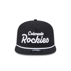 The Colorado Rockies Team Text Golfer features an embroidered Rockies script at the front panels with a team logo at the right-wear side and a snapback closure at the rear.