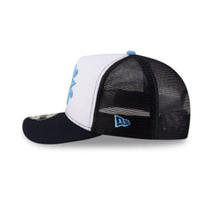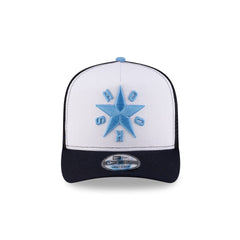 The Corpus Cristi Hooks 9FIFTY A-Frame Trucker features an embroidered Hooks logo at the front panels with snapback closure at a mesh rear and a blue undervisor.
