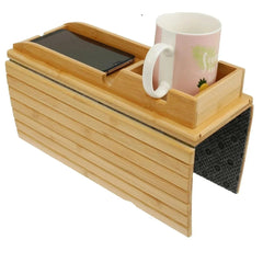 Couch Cup Holder Bamboo Wood Sofa Armrest Tray – Foldable Non-Slip Sofa Cup Holder and Side Storage Tray