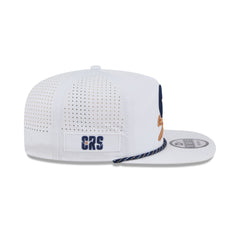 The Crushers GC Performance Rope Golfer features an embroidered Crushers GC logo at the front panels with breathable performance fabric throughout the cap. Additional details include a team patch at the right-wear side, an adjustable drawstring closure at the rear, and a blue undervisor.
